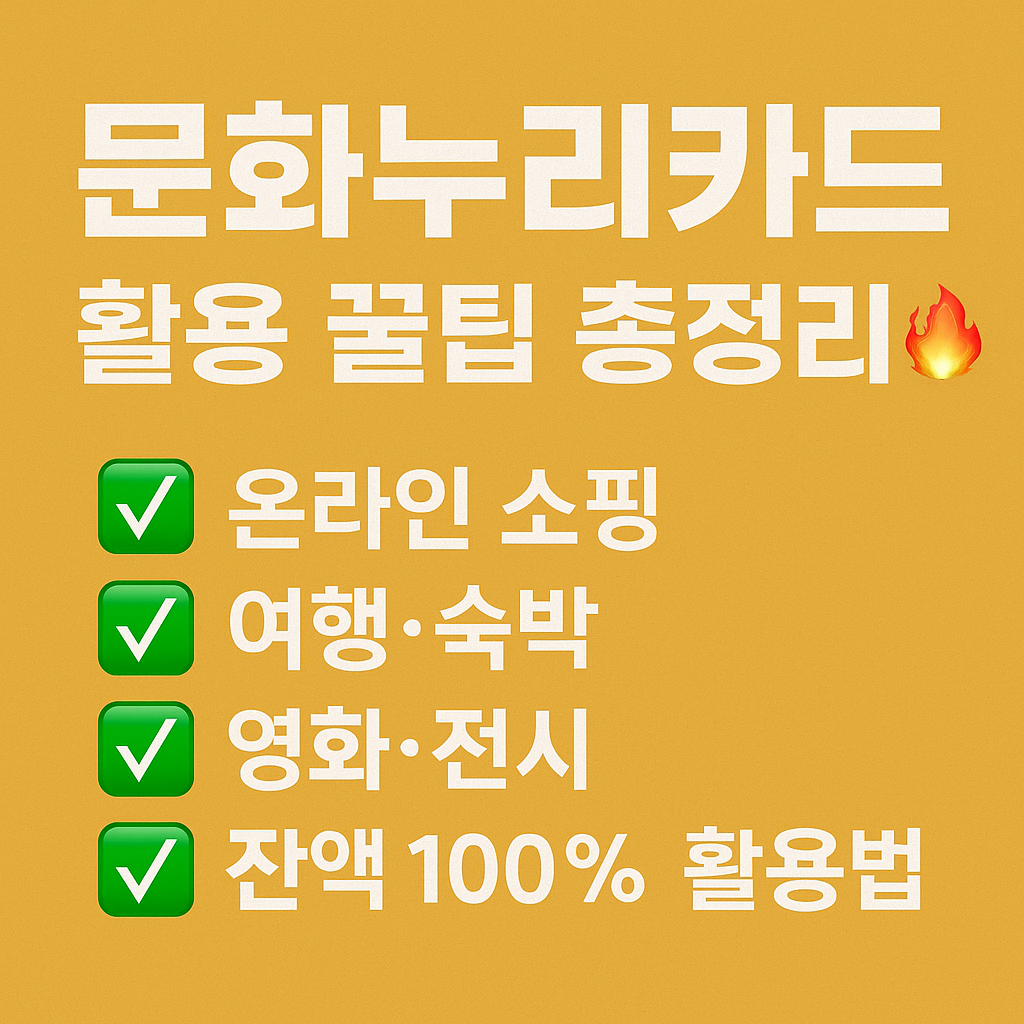 오늘은 문화누리카드를 100% 활용할 수 있는 꿀팁을 온라인 쇼핑, 여행·숙박, 영화·전시, 잔액 활용법으로 나누어 정리했습니다.